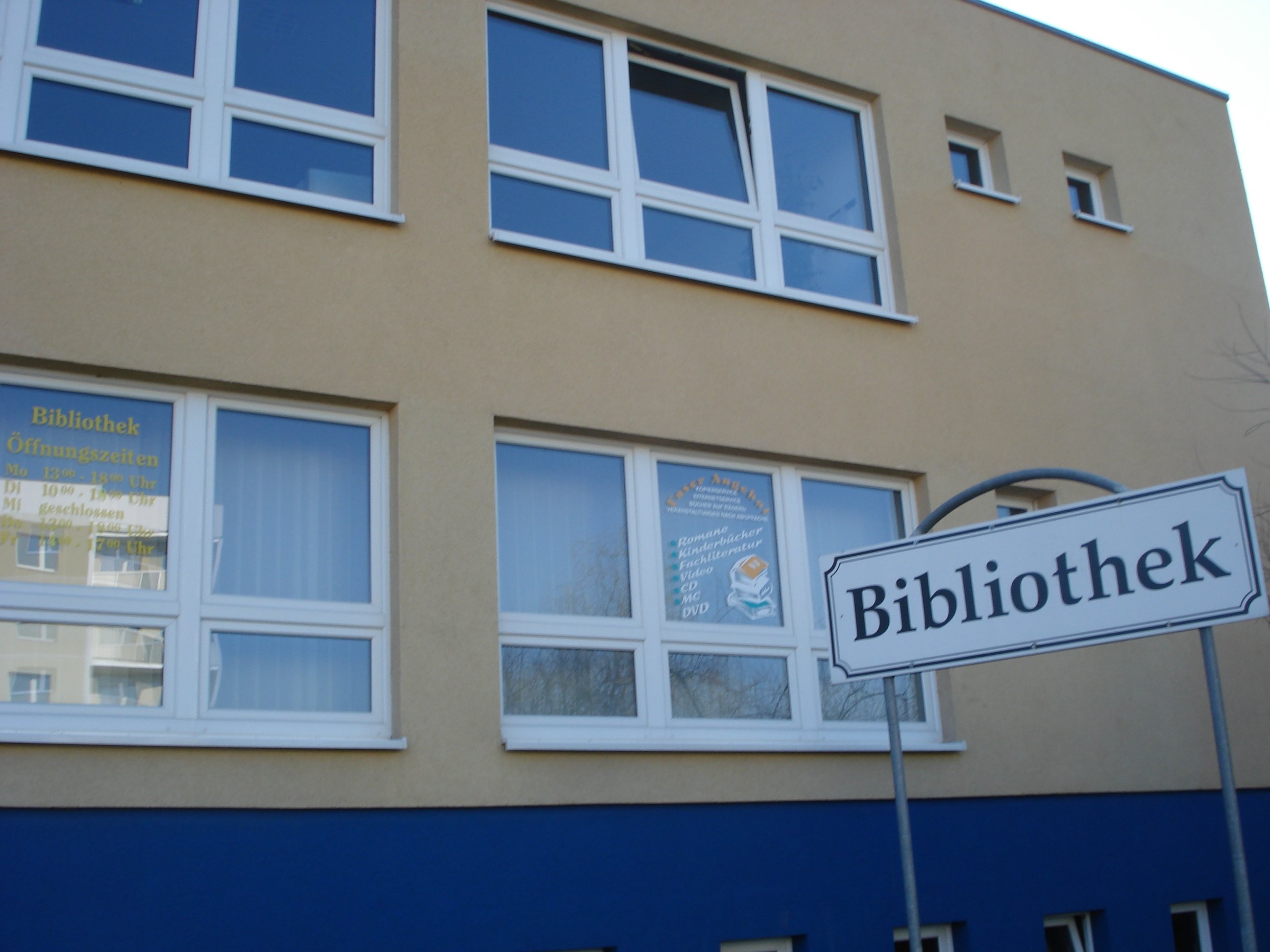 Der letzte große Umzug in die Maxim-Gorki-Straße bedeutet für alle Leser und Mitarbeiter eine erhebliche Verbesserung. Auf 240 Quadratmeter werden neben Bücher auch MCs, CDs, Videos und seit neuestem CD-ROMs sowie DVDs angeboten. Mit ca. 800 angemeldeten Lesern und rund 45.000 Entleihungen beweist die Stadtbibliothek ihre Unverzichtbarkeit für Bildung, Kultur, Hobby, Freizeit sowie Informationen. |