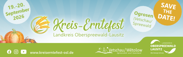 Am 19. und 20. September 2026 findet im Vetschauer Ortsteil Ogrosen das 3. Kreis-Erntefest des Landkreises Oberspreewald-Lausitz und der Stadt Vetschau/Spreewald im Ortsteil Ogrosen statt.