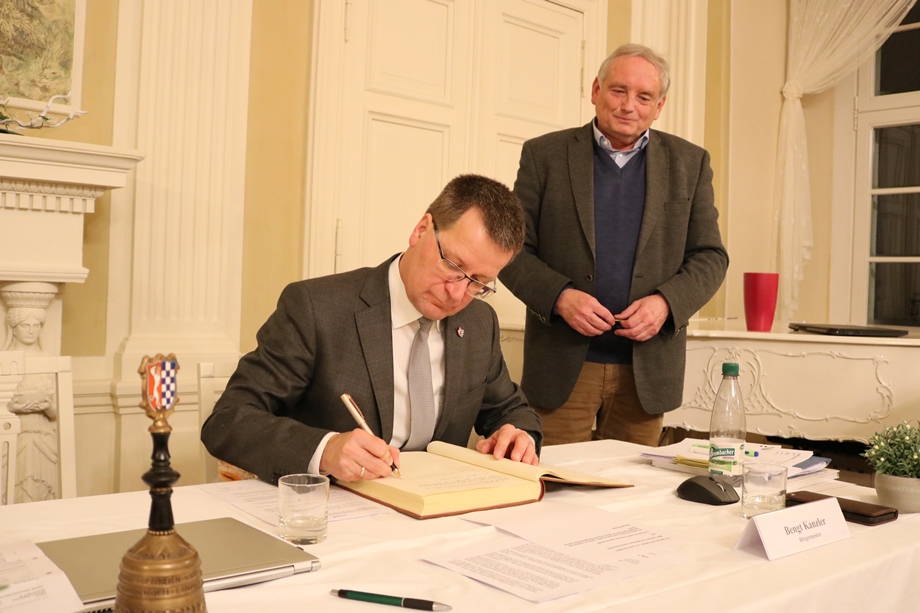 Im feierlichen Rahmen blickte Bengt Kanzler im historischen Rittersaal in einer emotionalen Rede auf seine 16 Jahre als Bürgermeister zurück. Viele Projekte sind gut gelungen, andere sind die im Nachhinein weniger gelungen, stellte er selbstkritisch fest. Betonte aber, immer zum Wohle der Stadt und deren Einwohner gehandelt zu haben. Anschließend durfte er sich ins Goldene Buch der Stadt eintragen.