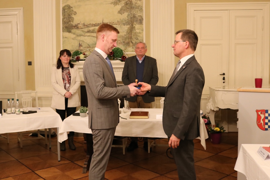 Im Rittersaal des Vetschauer Stadtschlosses hat die feierliche Amtsübergabe an den neuen Bürgermeister Chris Mielchen stattgefunden. Er tritt die Nachfolge von Bengt Kanzler an. In der Stadtverordnetenversammlung am 19. Januar leistete Chris Mielchen seinen Amtseid als neuer Bürgermeister der Stadt Vetschau.