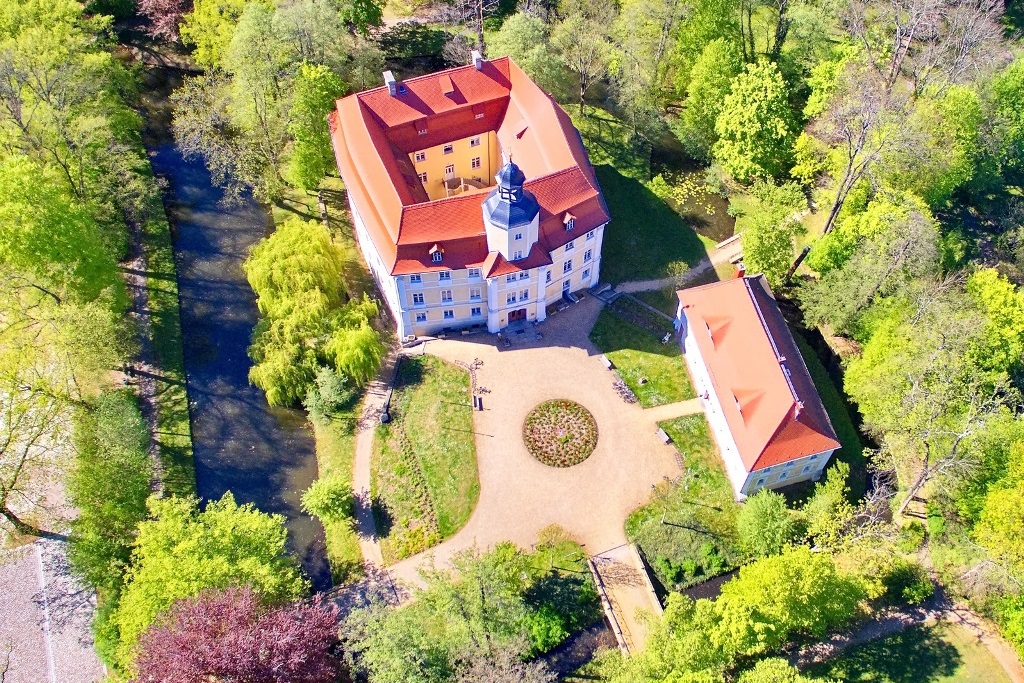 Der Schlosspark hat eine Größe von 4,6 Hektar. Unter dem alten Baumbestand findet man noch zwei seltene Exemplare von Sumpfzypressen, die heute unter Naturschutz stehen. Der gesamte Park sowie alle darauf befindlichen Gebäude stehen heute unter Denkmalschutz.