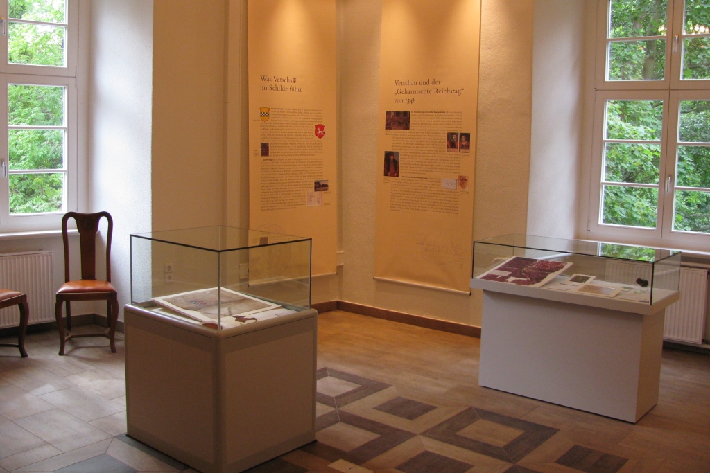 Unter dem Motto "Was Vetschau im Schilde führt" lädt das Wappenzimmer des Schlosses Vetschau zu einem Besuch ein. Die Ausstellung ist dem spektakulären und in Brandenburg einmaligen Fund des Wappenprivilegs aus dem Jahre 1548 gewidmet. Das Privileg galt über Jahrhunderte hinweg als verschollen, bevor es 2005 bei Restaurierungsarbeiten unter Dielenbrettern auf dem Dachboden eines Hauses am Vetschauer Markt 1 wiederentdeckt wurde. Durch Spenden vieler Vetschauer Bürger konnte die Urkunde fachgerecht restauriert werden.